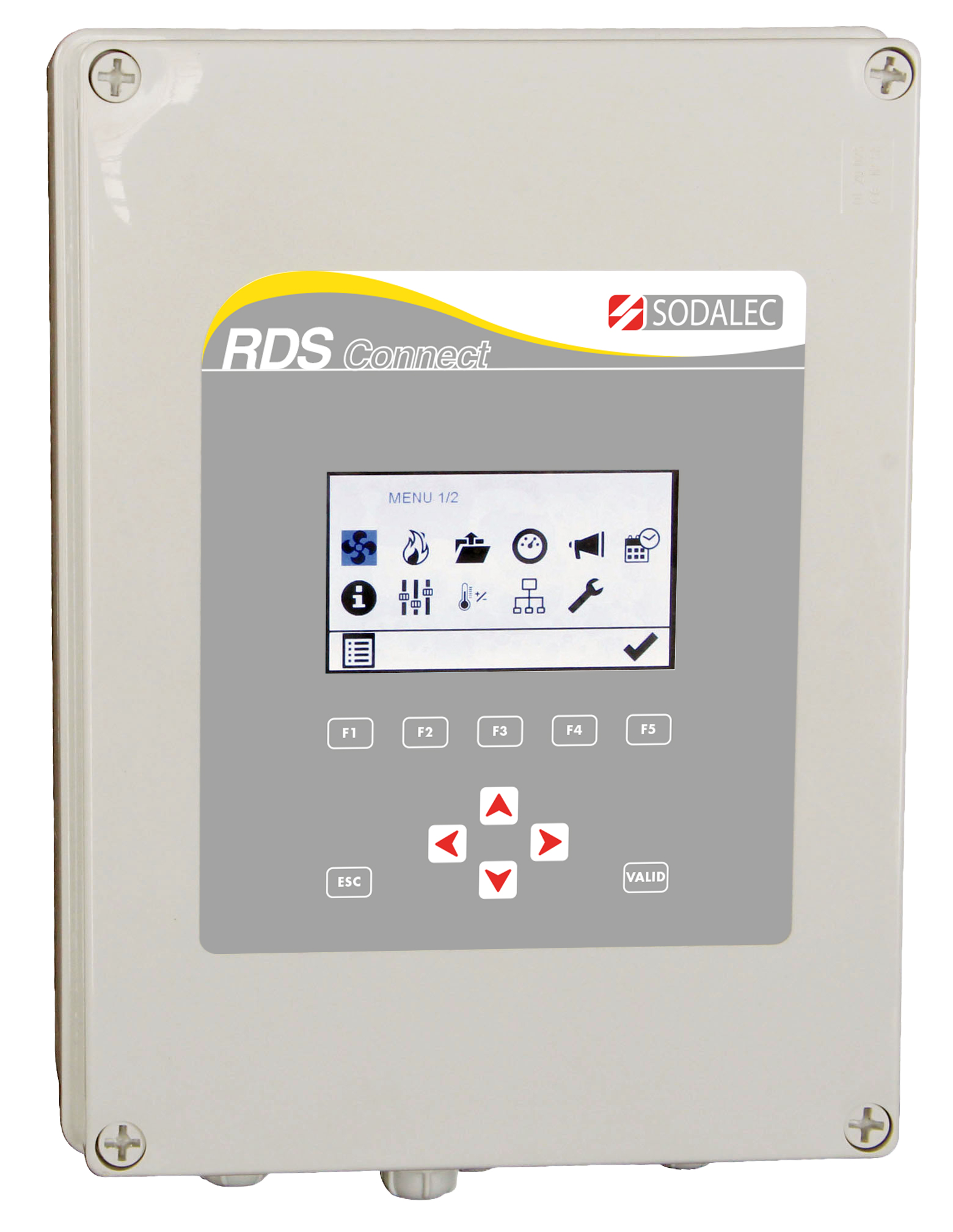RDS Connect dispose de deux sorties 0-10 V pour la gestion des ventilateurs EC ou les ventilations centralisées. Il est possible de contrôler deux groupes différents pour optimiser l’air à passer dans le laveur d’air.
