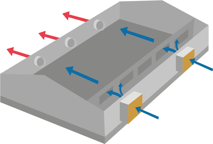 - Vitesse d’air adaptée selon le stade physiologique des animaux. De 0,5 à 2 m/s = Confort des animaux.