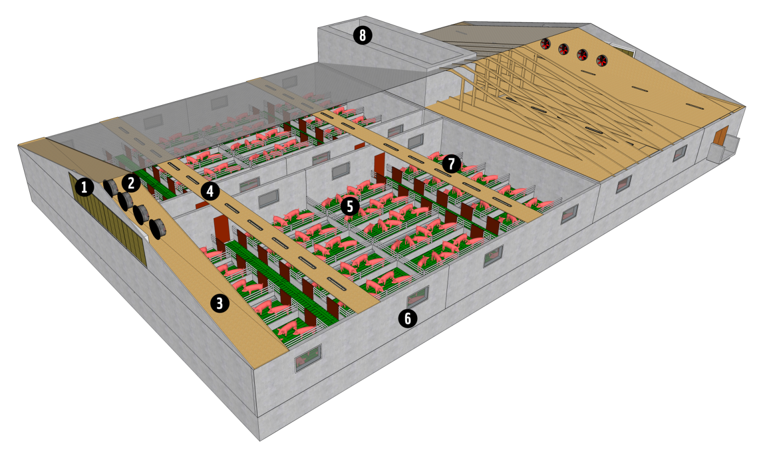 Bâtiment pour porc – Ventilation verticale « Multi-Âges » centralisée en Surpression