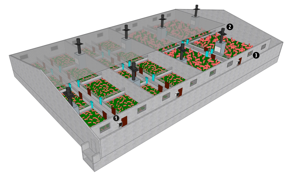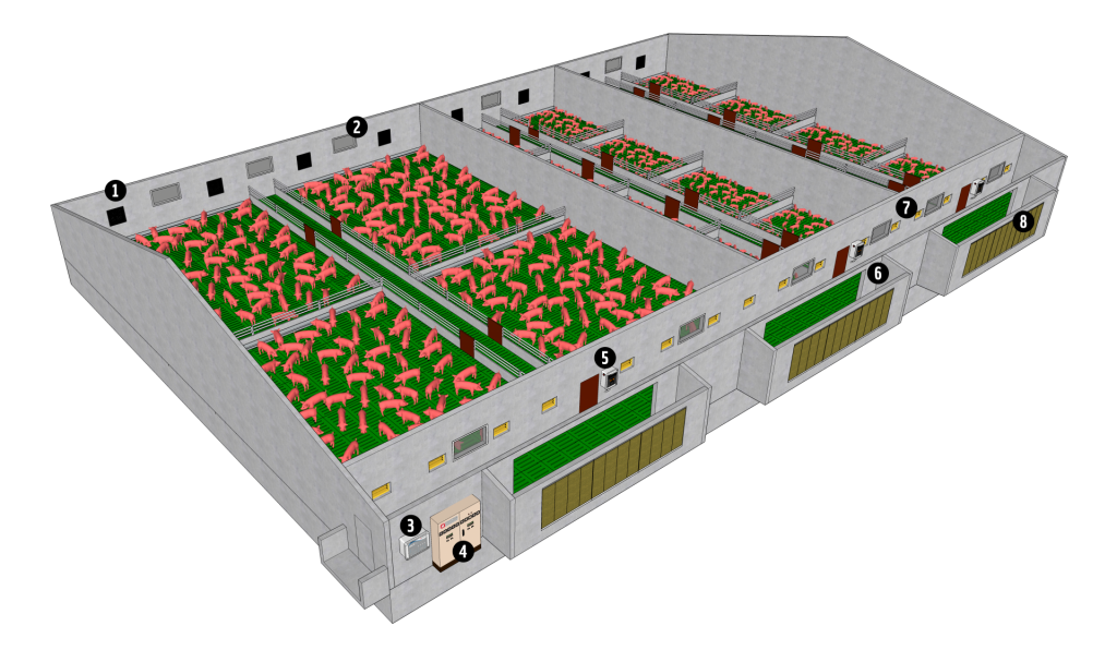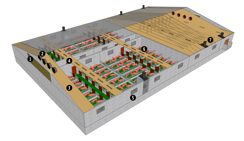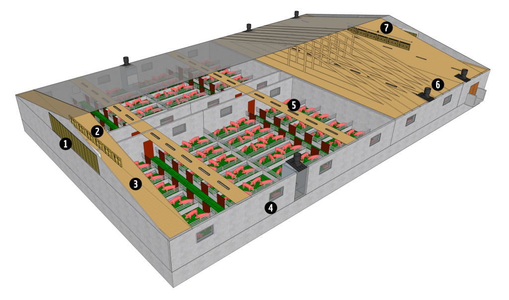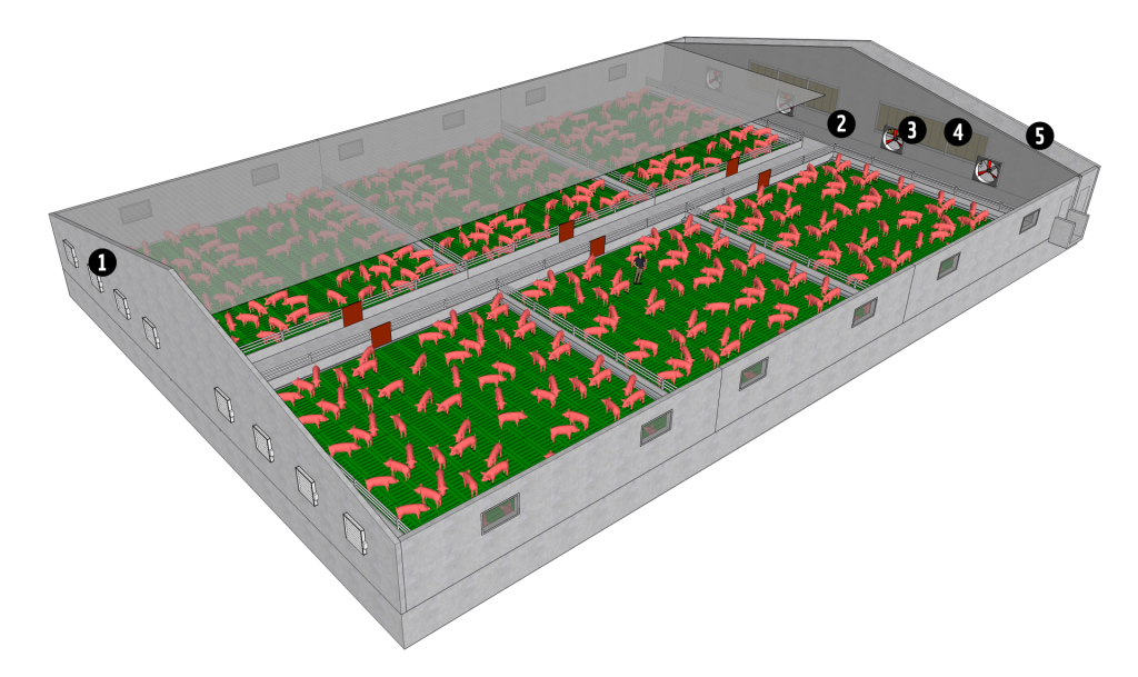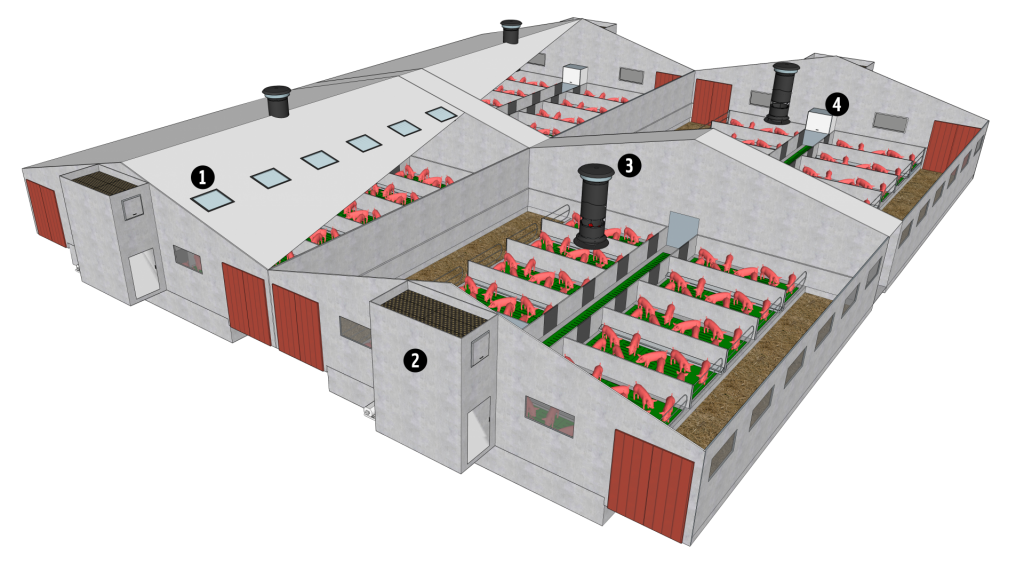 Bâtiment pour Porcs – Flux d’air horizontal « Âge unique » dépression